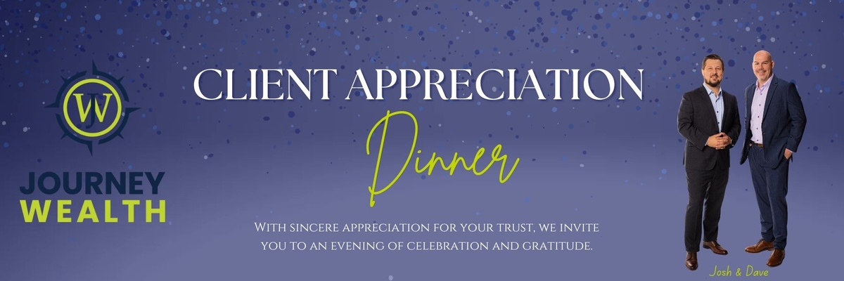 Join Journey Wealth Strategies for a Client Appreciation Dinner as we celebrate the relationships that matter most. Friends and family are welcome for an evening of great food, meaningful conversation, and a brief market update with timely insights on what we are watching in the months ahead.